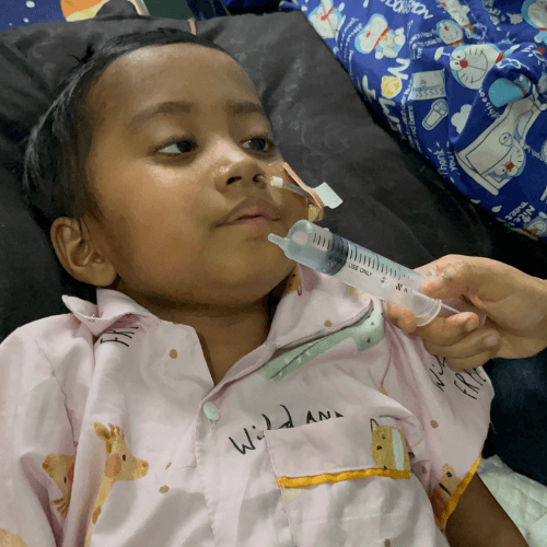 Di balik perjuangan Salwa, ada hati orang tua yang hancur melihat anaknya terbaring lemah.