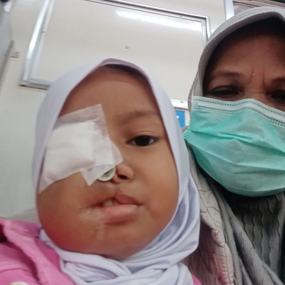 Berawal dari bulan Oktober 2020, di pipi sebelah kiri terdapat benjolan kecil dan semakin hari semakin membesar dengan sangat cepat. Aku merasakan sakit yang luar biasa hingga aku merintih kesakitan dan membuat ibuku sedih. Aku tidak suka melihat ibu menangis, tapi aku tidak bisa menahannya.